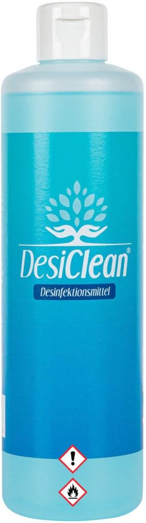 DesiClean ist ein hochwertiges Desinfektionsmittel zur Desinfektion von Händen und Oberflächen. Flascheninhalt: 500 ml zur unverdünnten Anwendung: trockene Hände mit ca. 3 ml Wirkstofflösung vollständig benetzen und mindestens 60 Sekunden in der Handinnenfläche und auf dem Handrücken verreiben. Nicht mit Wasser abspülen.